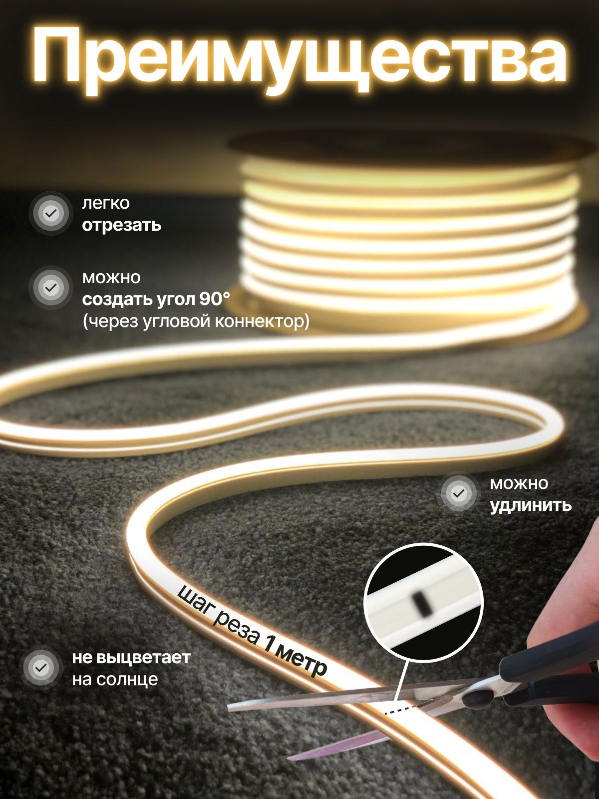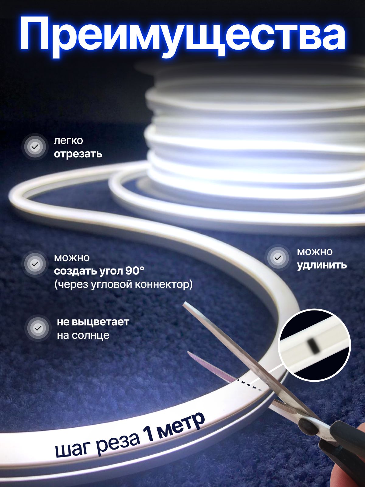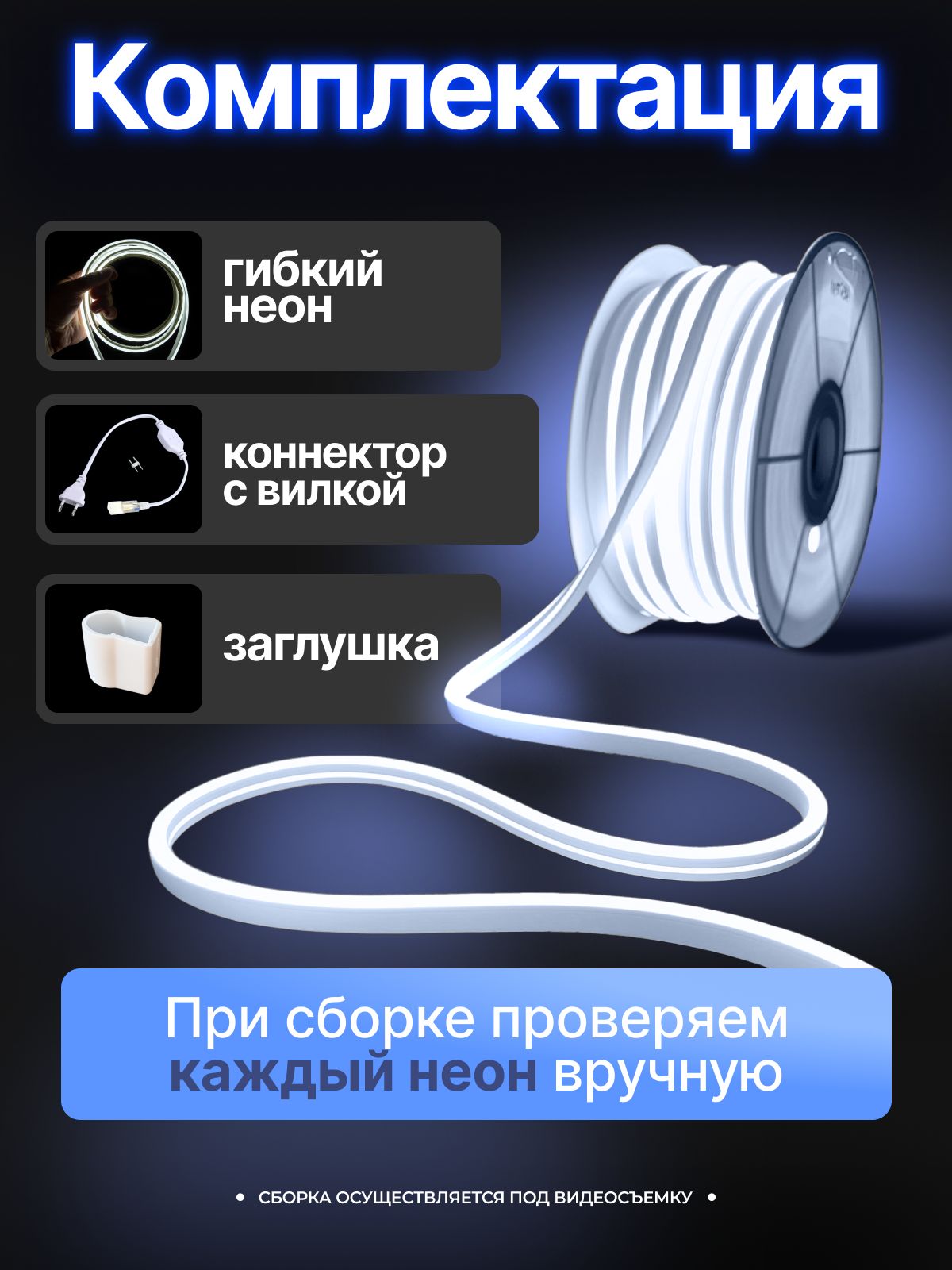 Гибкий неон 220В работает от сети, через коннектор (идет в комплекте).