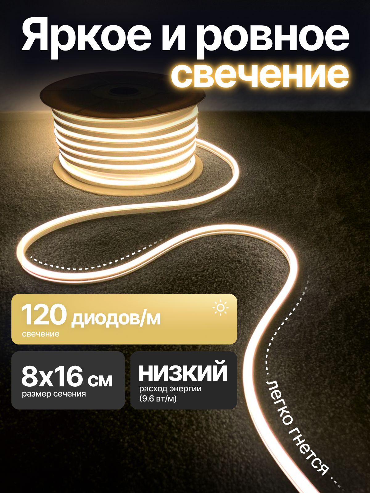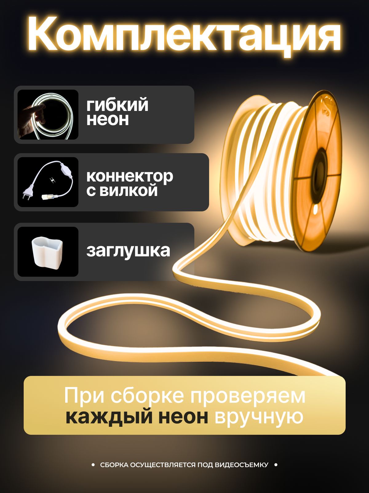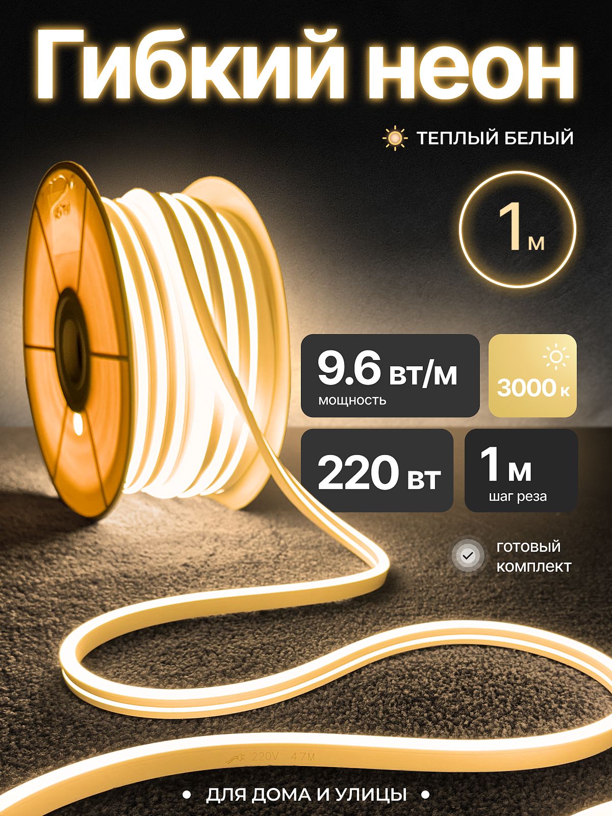 Гибкий неон 220В работает от сети, через коннектор (идет в комплекте).